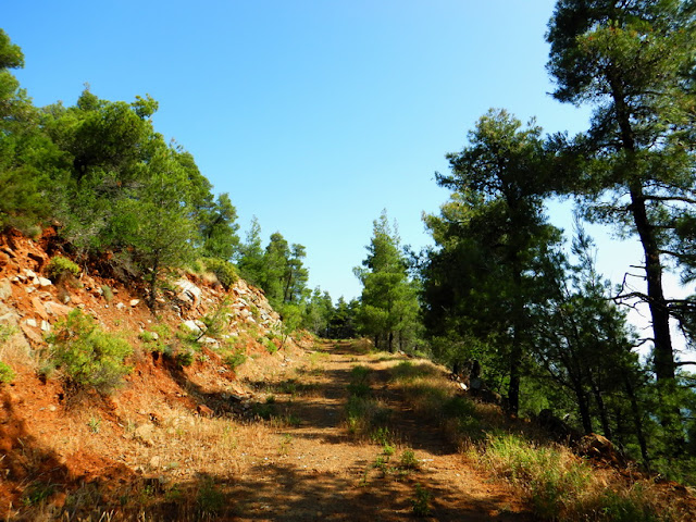 Καμένα αριστερά και δεξιά, ενώ το χωματόδρομο καλύπτουν μικρά πευκάκια: